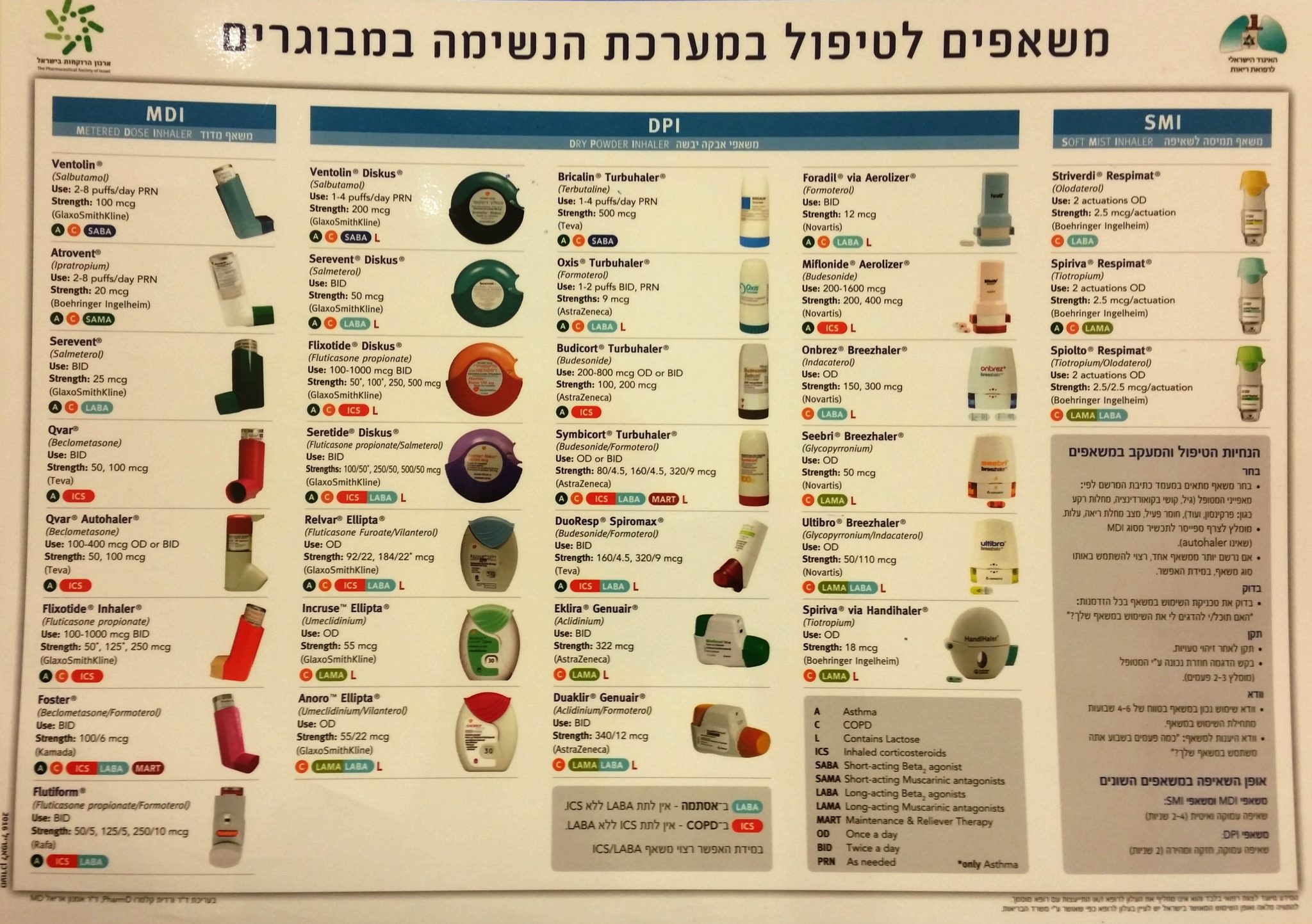 אגוד הרוקחות הישראלי יחד עם האיגוד לרפואת ריאות ניסו לעשות קצת סדר בבלאגן ופירסמו טבלה צבעונית זו